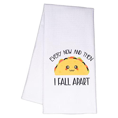 Joyriza Every Now and Then I Fall Apart – Funny Kitchen Towels Gifts, Gag Taco Lover Gift, Housewarming Present for Taco Lovers Friends Mom Grandma, Decorative Joke Waffle Weave Dish Towel