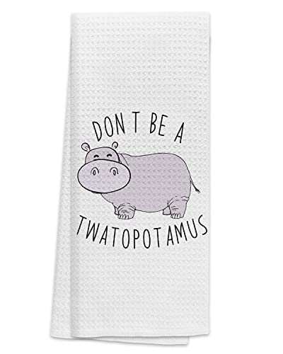 TUNW Don’t Be A Twatopotamus Cute Hippo Soft and Absorbent Kitchen Towels Dishcloth,Funny Hippo Punny Hand Towels Dish Towels 16″×24″,Funny Sarcastic Offensive Gag Gifts for Women Men