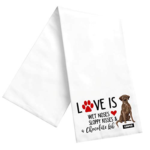 The Creating Studio Personalized Love is Wet Noses Sloppy Kisses and a Chocolate Labrador Retriever Waffle Kitchen Towel -15″x25″ Housewarming Gift, Dog Lover Gift