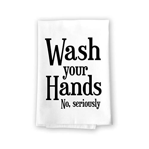 Honey Dew Gifts Funny Towels, Wash Your Hands No Seriously Flour Sack Towel, 27 inch by 27 inch, 100% Cotton, Highly Absorbent, Multi-Purpose Bathroom Hand Towel