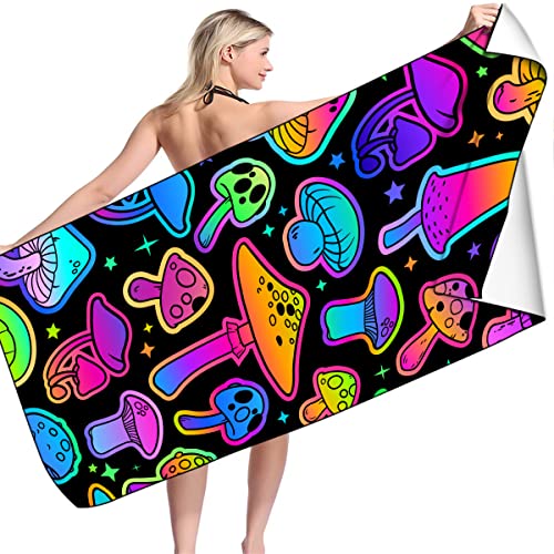 SHUIHAN Trippy Mushroom Beach Towel Oversized, Colorful Funny Hippie Bath Towels for Adults, Super Soft Water Absorpt Bath Towels for Bathroom, Swimming Pool, Sport (Black), 60”x30”