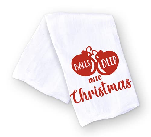 Handmade Funny Christmas Kitchen Towel – Balls Deep Into Christmas Dishwashing Hand Towel – Seasons Greetings – 28×28 Inch Perfect for Housewarming Hostess Gifts (Balls Deep Into Christmas)