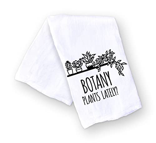 Handmade Funny Kitchen Towel – 100% Cotton Botany Plants Lately Plant Puns Dish Towel for Plant Lovers – 28×28 Inch Perfect for Housewarming Christmas Mother’s Day Birthday Gift (Botany Plants Lately)