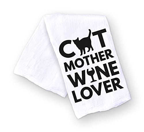 Handmade Funny Kitchen Towel – 100% Cotton Funny Cat Dish Towel – 28×28 Inch Perfect for Housewarming Cat Dog Lovers – Christmas – Pet Lovers Gift (Cat Mother Wine Lover)