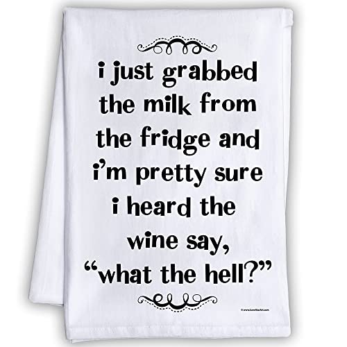 I Just Grabbed The Milk From The Fridge and I Heard The Wine Say, What the Hell? – Tea Towels – Decorative Dish with Sayings, Funny Housewarming Kitchen Gifts – Multi-Use Cute Kitchen- Gifts for Women