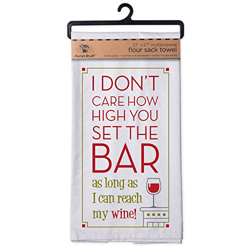 Chris’s Stuff Kitchen Dish Towel – Flour Sack Cotton Dishcloth – Highly Absorbent – 27 x 27 Inches for Wine Lovers – Funny Quote Therapy (Set The Bar)
