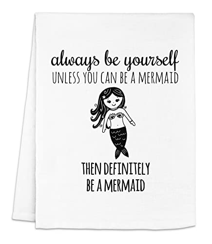 Funny Dish Towel, Always Be Yourself Unless You Can Be A Mermaid, Flour Sack Kitchen Towel, Sweet Housewarming Gift, Farmhouse Kitchen Decor, White or Gray (White)