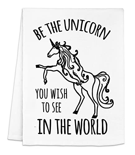 Funny Dish Towel, Be The Unicorn You Wish To See In The World, Flour Sack Kitchen Towel, Sweet Housewarming Gift, Farmhouse Kitchen Decor, White or Gray (White)