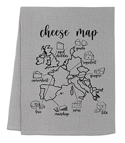 Funny Dish Towel, Cheese Map Flour Sack Kitchen Towel, Sweet Housewarming Gift, Farmhouse Kitchen Decor, White or Gray (Gray)