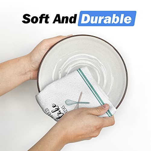 Artoid Mode Coffee Kitchen Ware Quote Funny Kitchen Towels and Dish Towels, 18 x 26 Inch Housewarming Daily Ultra Absorbent Drying Cloth Hand Towels and Tea Towels for Cooking Baking Set of 4
