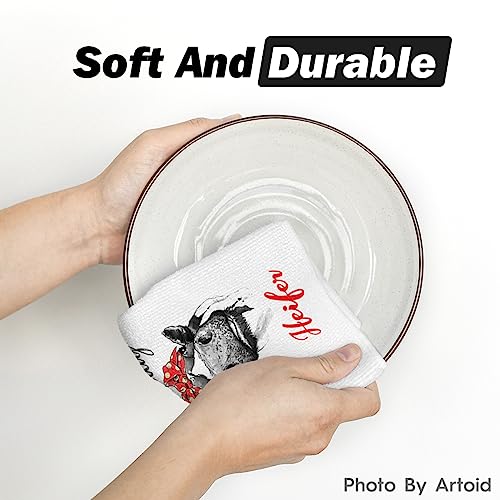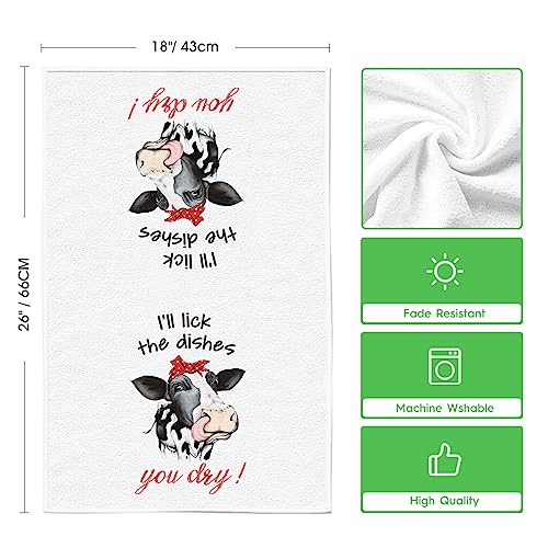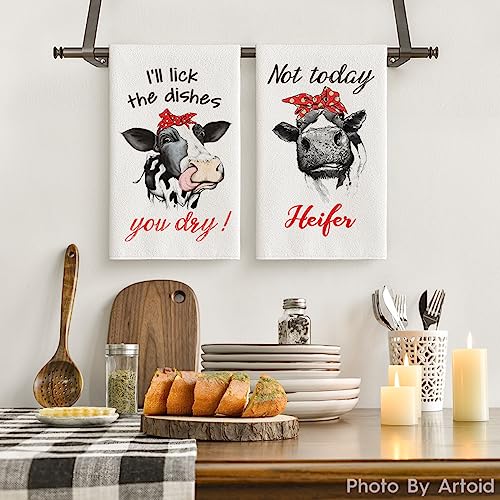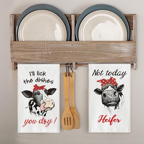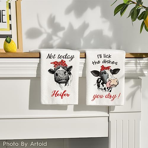 Artoid Mode Funny Farm Cow Kitchen Towels Dish Towels, 18×26 Inch I’ll Lick The Dishes You Dry Not Today Heifer Decoration Hand Towels Set of 2