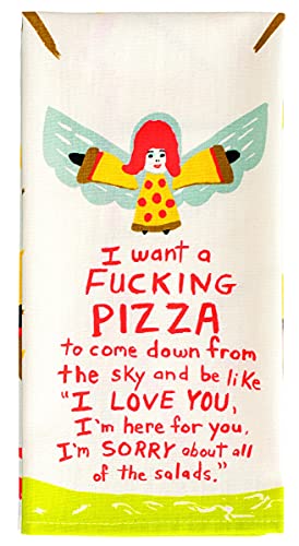 I WANT A FUCKING PIZZA TO COME DOWN FROM THE SKY AND BE LIKE “I LOVE YOU, I’M HERE FOR YOU, I’M SORRY ABOUT ALL OF THE SALADS.” Blue Q funny screen-printed dish towels are Produced from soft, super-absorbent, 100% cotton. Screen-printed in wealthy vibrant colors.