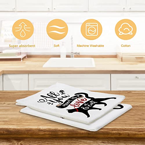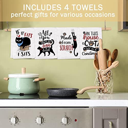 Bonsai Tree Cat Kitchen Towels, Cat Lover Gifts for Women Dish Towels Set of 4, Funny Cat Gifts for Cat Lovers Hand Towels, Cute Cat Sayings Tea Towels Housewarming Gifts for New Home Decor Mom
