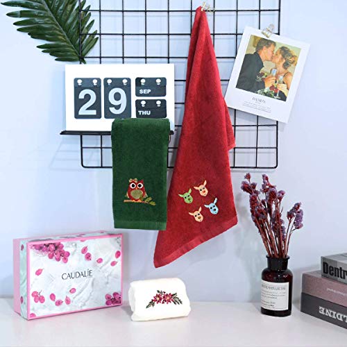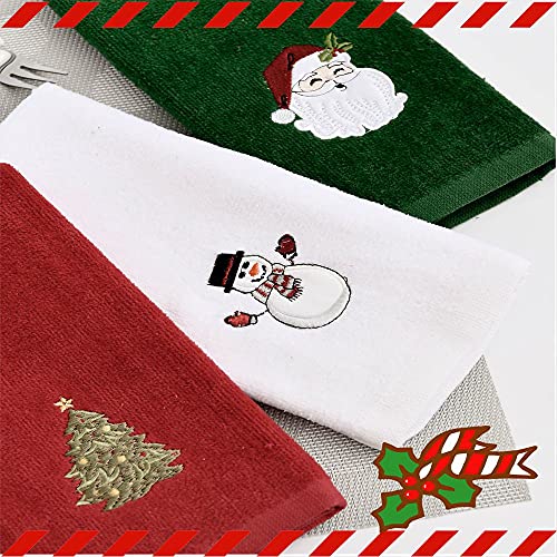 us beipin Christmas Hand Towels, 12×18 in, 100% Cotton Christmas Bathroom Towels,Decorative Dish Towels,Embroidered Holiday Design Towels Gift Set, 3 Color (Red, Green, White)