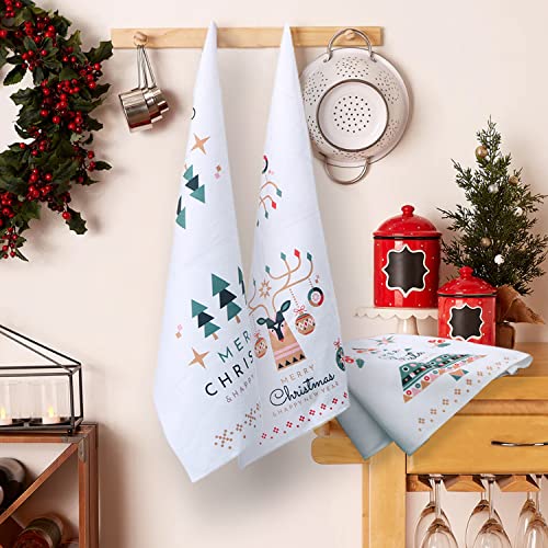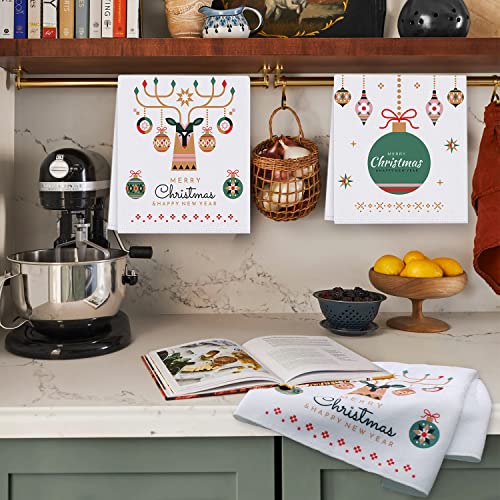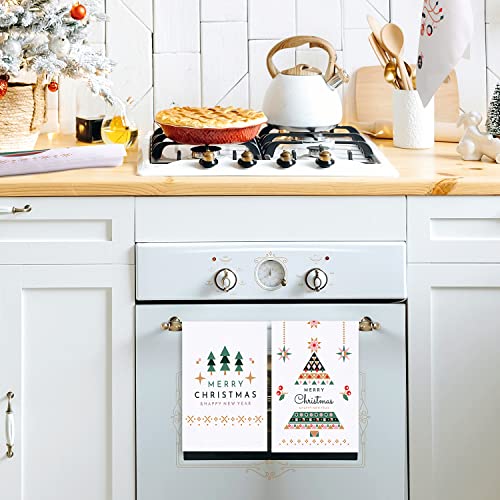 ARTHMOM Christmas Kitchen Dish Towels Set of 4, Merry Christmas Holiday White Hand Towels Funny Decorative Dishcloths Tea Towels Housewarming Gifts for New Home Bathroom Decorations