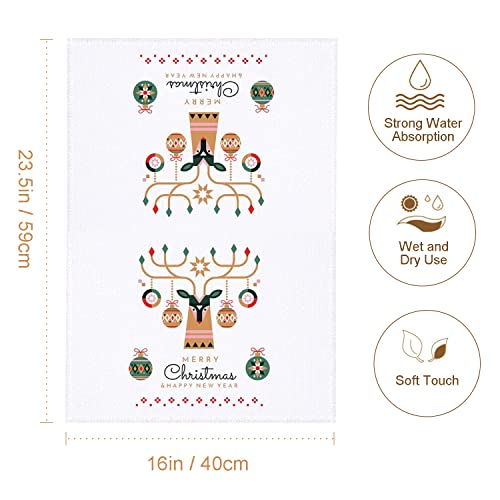 Unique Design: Our Christmas kitchen towels are printed classic Christmas elements such as Christmas tree, bells, reindeer, snowflakes, and printed with the text “Merry Christmas & Happy New Year”. Cute white hand towels decoration, hanging on the oven handle, counter top or towel rack, add Christmas holiday spirit to home and kitchen decor.