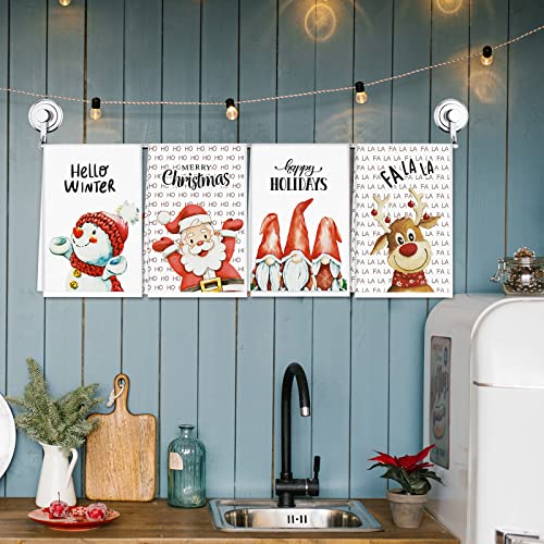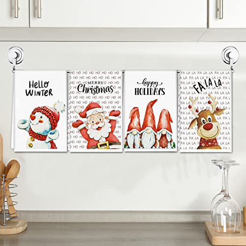 Christmas Kitchen Towels Santa Claus Winter Holiday Hand Towels Xmas Absorbent Dishcloths Let It Snow Kitchen Decor Christmas Dish Tea Towels Merry Bright Tea Towel for Home Kitchen Supplies 4PCS