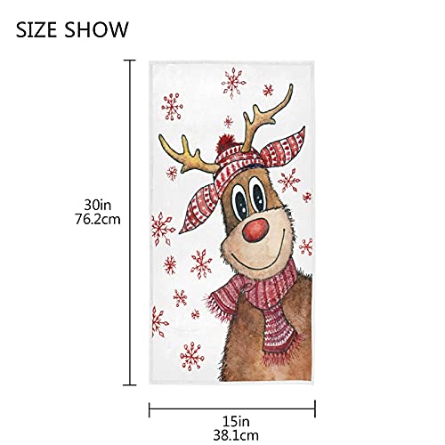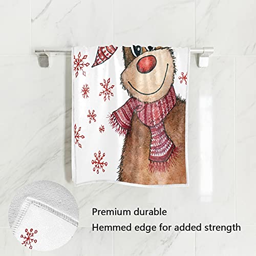 KOCOART Funny Christmas Deer Hand Towels Soft Quality Premium Washcloths Winter Snowflakes Kitchen Dish Towels Bathroom Decor for Guest Hotel Spa Gym Sport 30 x 15 inches