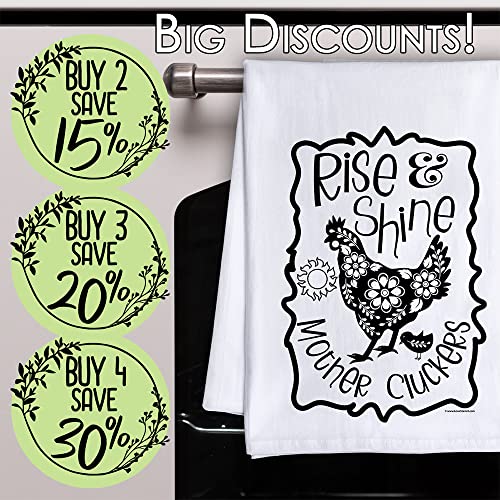 PREMIUM QUALITY – Flour sack dish towels are one hundred% premium ring-spun cotton and 130 thread count. Quality absorbent funny dish towels feature stitched edges and hanging loops. Look great in any kitchen, bar, or farmhouse.