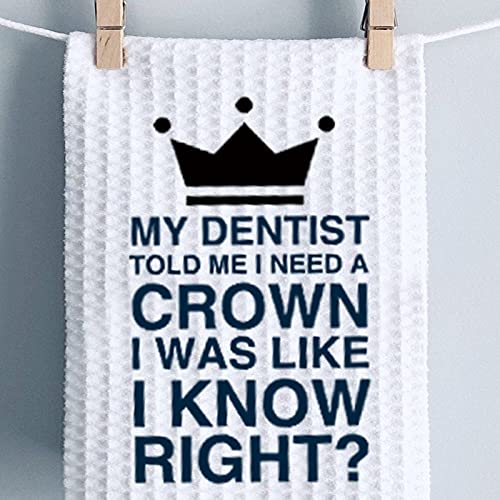 PWHAOO Funny Kitchen Towels My Dentist Told Me I Need a Crown Decorative Dish Towels with Sayings (Need a Crown Towel)