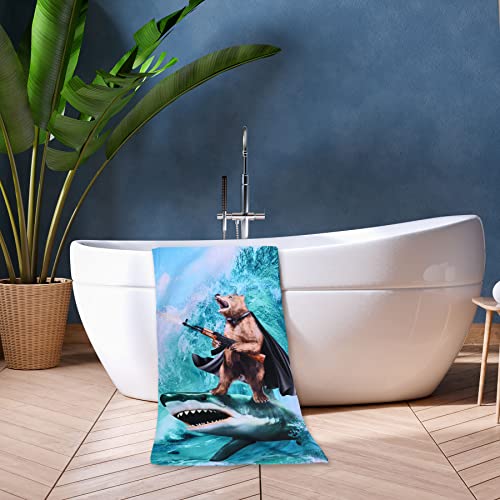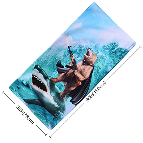Funny Shark Bear Beach Towel, Oversized Microfiber Bath Towel Gifts for Boys Men Adults, Soft Blue Sea Blanket Animals Sand Free Quick Dry Bath Pool Sports Travel Towels Gifts for Teens ,30 x 60