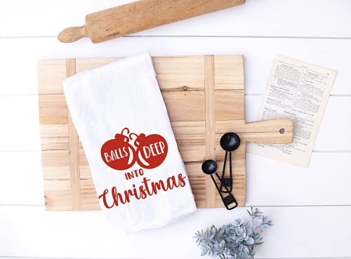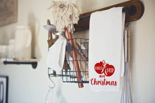 Handmade Funny Christmas Kitchen Towel – Balls Deep Into Christmas Dishwashing Hand Towel – Seasons Greetings – 28×28 Inch Perfect for Housewarming Hostess Gifts (Balls Deep Into Christmas)