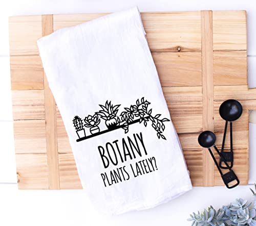 Handmade Funny Kitchen Towel – 100% Cotton Botany Plants Lately Plant Puns Dish Towel for Plant Lovers – 28×28 Inch Perfect for Housewarming Christmas Mother’s Day Birthday Gift (Botany Plants Lately)