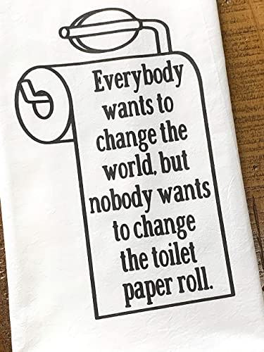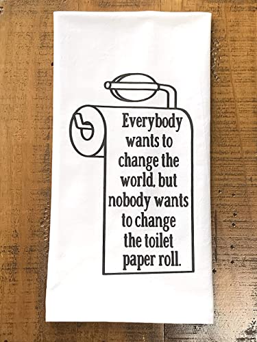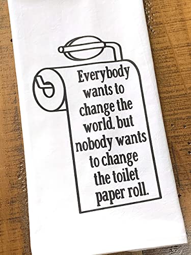 Handmade Funny Bathroom Towel – 100% Cotton Change the Toilet Paper Change the World – 28×28 Inch Perfect for Hostess Housewarming Christmas Mother’s Day Birthday Gift (Change the Toilet Paper Roll)