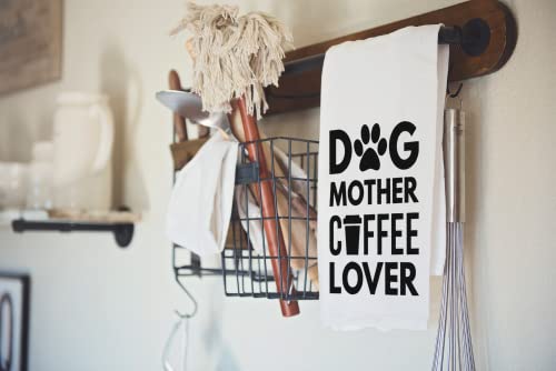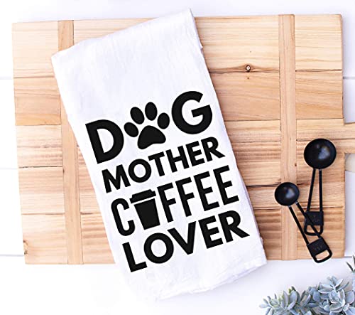 Handmade Funny Kitchen Towel – 100% Cotton Funny Cat Dish Towel – 28×28 Inch Perfect for Housewarming Cat Dog Lovers – Christmas – Pet Lovers Gift (Dog Mother Coffee Lover)