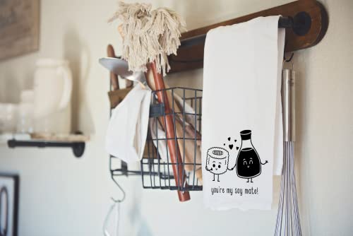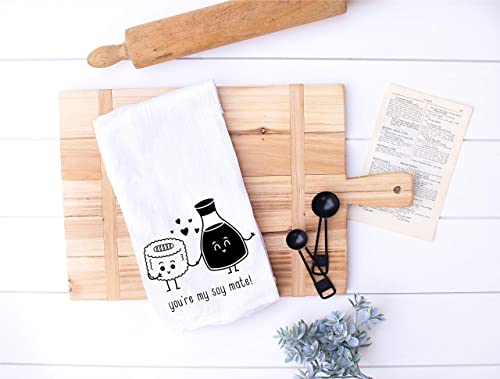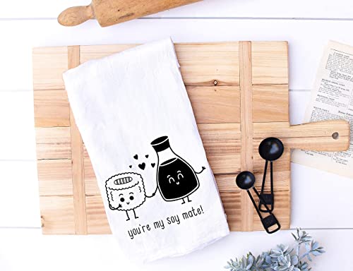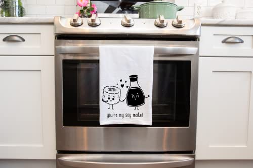 Handmade Funny Kitchen Towel – 100% Cotton Funny Hand Towel for Sushi Lovers – 28×28 Inch Perfect for Chef Housewarming Christmas Mother’s Day Birthday Gift (You are My Soy Mate)