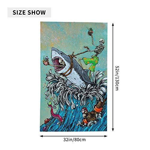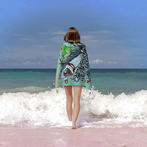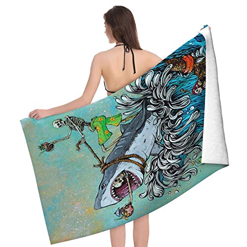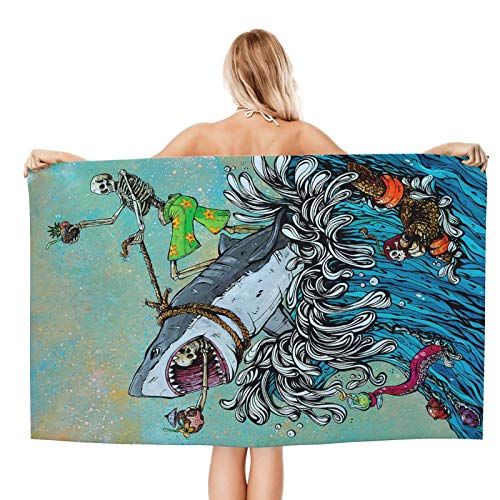 JASMODER Funny Skeleton Rides A Shark in The Surf Microfiber Beach Towels Oversized Soft Beach Blanket Absorbent Quick Dry Bath Towels Pool Towels Travel Beach Towels for Kids Adults
