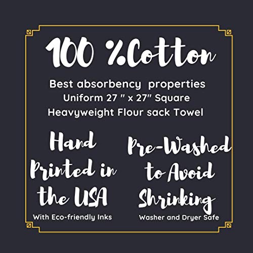 ✓ 100 % PREMIUM COTTON – Our flour sack towels Measure 27″ x 27″ and are hemmed on all sides . These funny dish towels are strong and durable, built to last and keep their absorbency.
