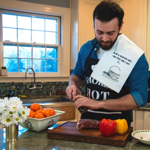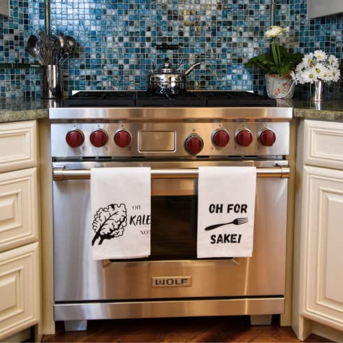 😁WITH 4 UNIQUE FUN KITCHEN TOWELS, our kitchen towel sets feature BEAUTIFULLY PRINTED ILLUSTRATIONS and the PHRASES “Stressed spelled backwards is desserts”, “Oh for (forks) sake!”, “I’m on a seafood diet. I see food and I eat it…” and “Oh kale no!!!” Our funny dish towel set is the name of the game ingredient you’ve been missing. In any case, nothing pairs with great cooking like a great sense of humor!
