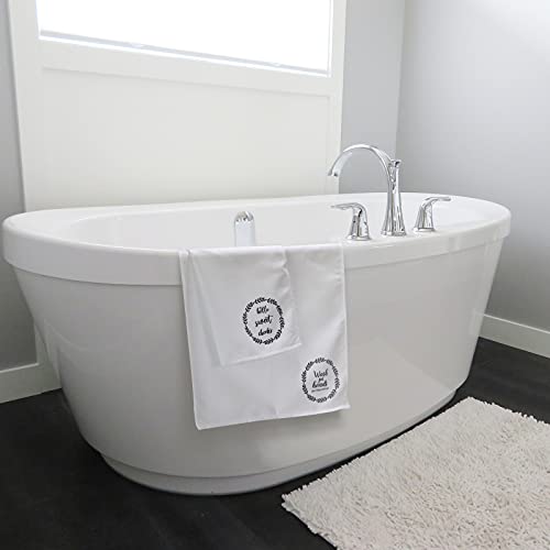Features:Convenient to clean:This hand towels combines the benefits of traditional hand towels and fiber sponges, hard when dry and soft when wet, suitable for washing dishes, wiping countertops, wiping spills, cleaning appliances and other smooth surfaces or some dead corners.Nice gift:These bathroom hand towels can also be shared with your mom, mother-in-law, wife, aunt, grandma, nana, daughter, sister, sister-in-law, cousin, girlfriends, coworkers, new neighbors, hostess or anyone who is taking a look to outfit her or his bathroom.Specifications:Material: polyesterSize: approx. 15 x 24 inchesColor: white, blackPackage includes: 4 x Funny bathroom hand towelsNotes:Don’t use bleach, fabric softener to clean the cloth as this clogs the microfibers and reduces performance.These towels can also be machine washed, use detergent liquid in cold water or warm water to be sure that it is only dried at low temperature.Please allow slight deviation because of manual measurement.Please allow slight color difference because of different monitors.