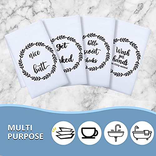 Funny sayings: these bathroom hand towels are designed with funny sayings, [Hello Sweet Cheeks], [Nice Butt], [Wash Your Hands Ya Filthy Animal] and [Get Naked], funny and interesting, which can provide you with and your guests a good mood