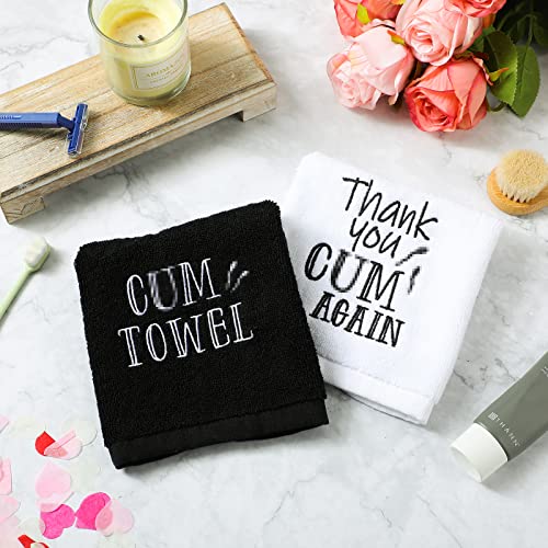 Oudain 2 Pieces Valentine’s Day Gift Funny Wash Cotton Towel Naughty Towel Funny Bathroom Hand Towels Funny Gifts for Him, Bachelorette Gifts for Bride, 12 x 12 Inch(Classic Color)