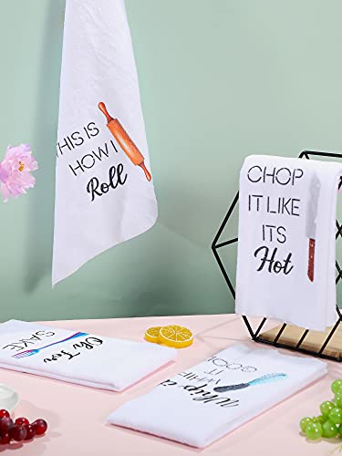 Patelai 4 Pieces Funny Kitchen Towels Dish Towels with Funny Saying Cute Decorative Dishcloths Sets Fun Dish Towels for Housewarming Present Home Kitchen Tools, 16 x 24 Inch