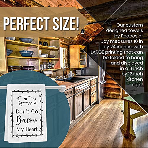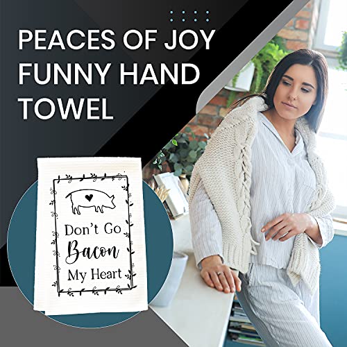 Peaces of Joy Don’t Go Bacon My Heart Funny Hand Towel Sayings for Kitchen, Rustic Cute Dish Towels for Home, Decorative Farmhouse Cloths Sign Gifts