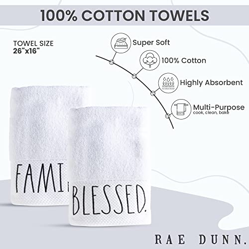 Rae Dunn Hand Towels, Embroidered Decorative Hand Towel for Kitchen and Bathroom, 100% Cotton, Highly Absorbent, Two Pack, 16×28, Embroidered Blessed/Family