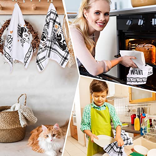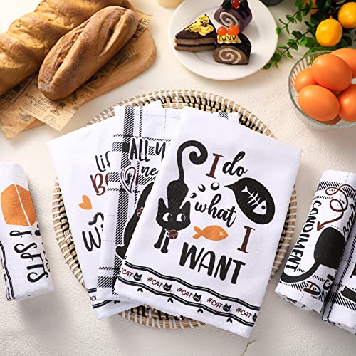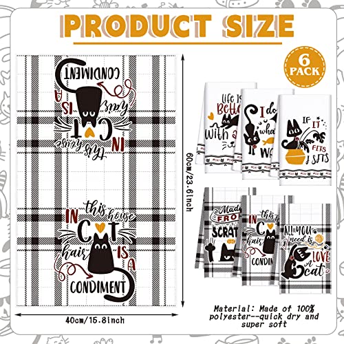 Redbaker 6 Pcs Black Cat Theme Kitchen Towels Funny Dish Towel Kitchen Hand Towels Decorative Tea Towels for Kitchen Absorbent Kitchen Decor with Hanging Loop for Bathroom Home Housewarming Gift