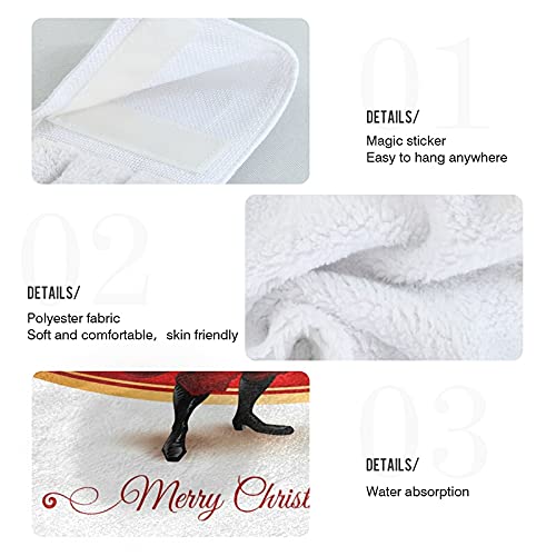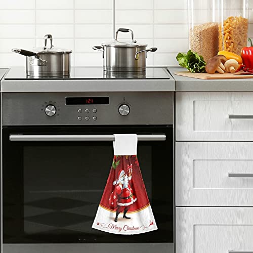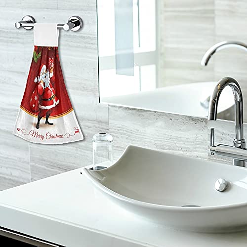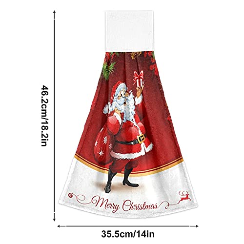 KOCOART Santa Claus Gift Hanging Hand Towels Red Merry Christmas Kitchen Dish Towel with Loop 2 Pack, Soft Coral Velvet Fingertip Towel Dishcloth for Bathroom Washroom Guestroom Hotel
