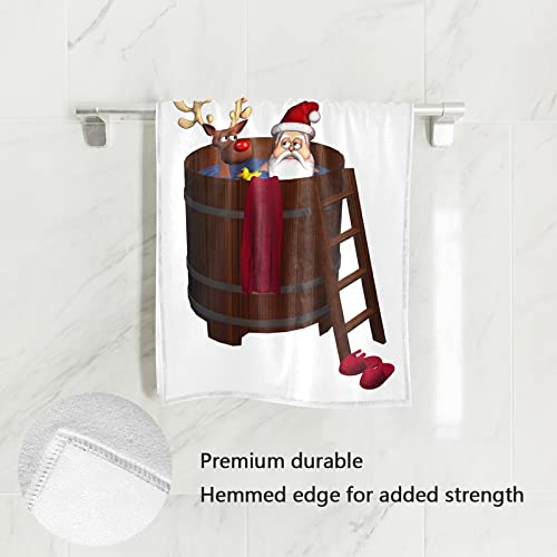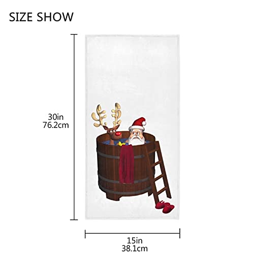 Santa Reindeer Hot Tub Soft Hand Towels for Bathroom 30X15,Decorative Funny Christmas Kitchen Dish Fingertip Towels Washcloth for Guest Gift Home Family