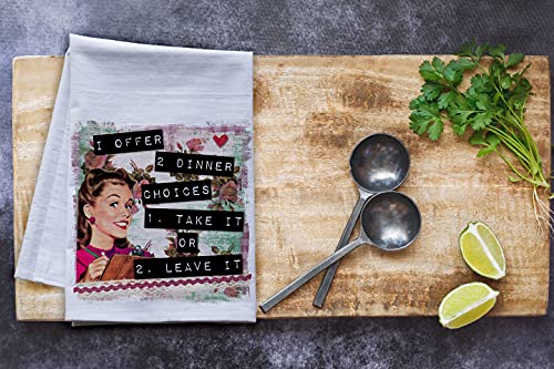 HUGE — at least for tea towels. At 27″x27″ they are truly nicely sized, which every woman can appreciate. The image is printed so your dish towel can be folded in thirds and then hung over the oven handle and the design will be front and center for your entire guests to enjoy.