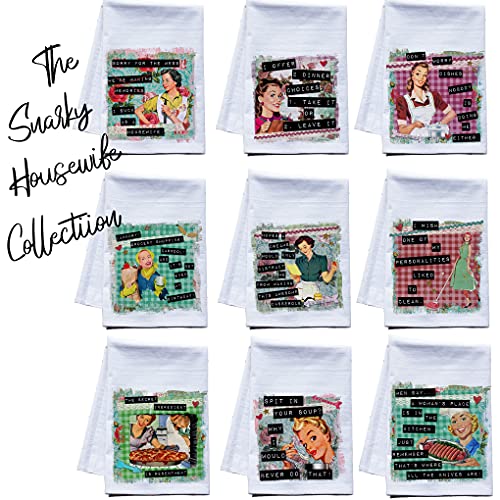 FUNNY GIFT IDEA — Sarcastic kitchen towels are perfect for a gift basket of sister gifts or best friend gifts for the bestie with a biting sense of humor. They make a unique birthday or housewarming gift too!