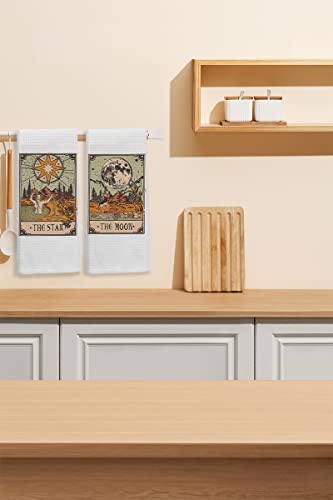 Knibeo Tarot Kitchen Towels Set – Witchy Bathroom Decor, 2 Pieces 16 X 24 Inch Tarot Card Bath Hand Towels, Gifts for Witchy Women, Tarot Decor, Hand Towels for Bathroom