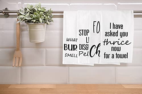 Vastsea Funny Kitchen Towels Set-Funny Flour Sack Dish Towels Decorative Set with Saying,Tea Towels,Funny Hand Towels Set of 4,New Home Gifts,Housewarming Gift for Women Hostess,White