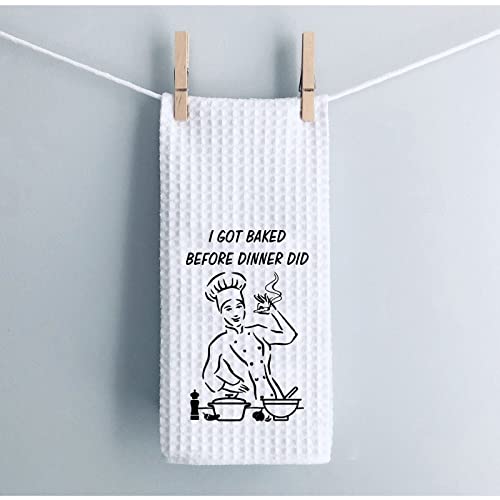 WCGXKO Funny Kitchen Towel I Got Baked Before Dinner Did Kitchen Decor Housewarming Gift (I GOT Baked)