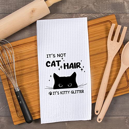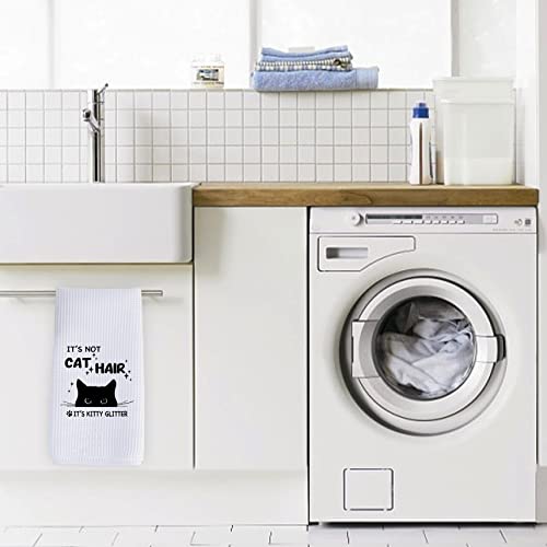 XUISWELL It’s Not Cat Hair It’s Kitty Glitter Kitchen Towel Dish Towel Dishcloth,Funny Black Cat Decorative Absorbent Drying Cloth Hand Towels Tea Towels,Gifts for Cat Lovers Girls