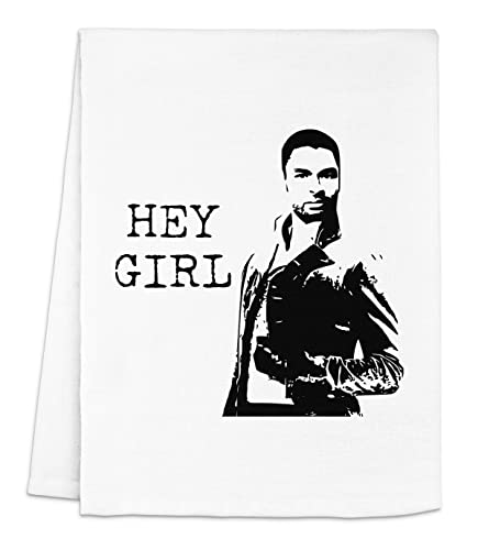 Funny Kitchen Towel, Hey Girl, Flour Sack Dish Towel, Sweet Housewarming Gift, White or Gray (White)